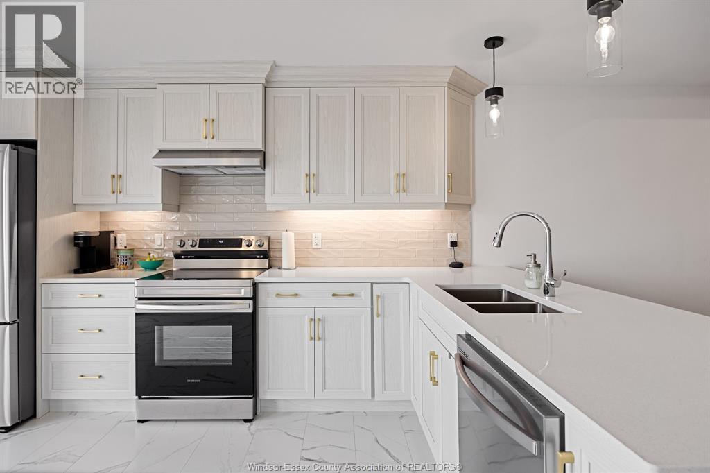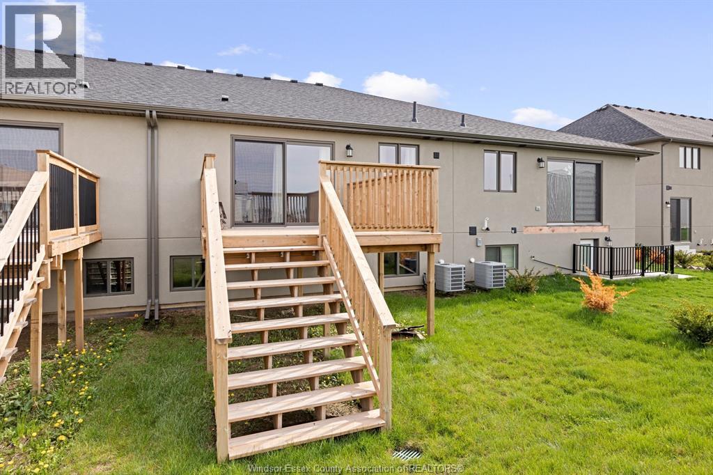 Discover this beautifully crafted newer townhome in an unbeatable location. Situated in the desirable Town of Essex, this raised ranch with a bonus room features a bright & open main floor with hardwood flooring, a cozy gas fireplace, & a spacious open-concept layout. The chef-inspired kitchen is a standout with elegant quartz countertops, ample cabinetry with crown molding, and plenty of prep space. The main floor also includes a large second bedroom, a full bathroom, a powder room, & convenient laundry facilities. Upstairs, you'll find a private primary suite walk-in closet & a luxurious ensuite bathroom. The lower level awaits your finishing touches. The attached garage offers parking and extra storage space. Ideally located near parks, trails, shopping, and with easy access to Hwy 3, offering effortless commuting throughout Essex County. Immediate Possession. (id:4555)