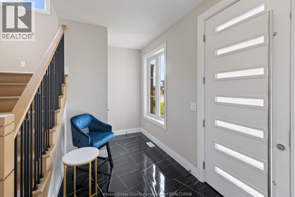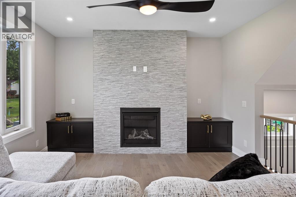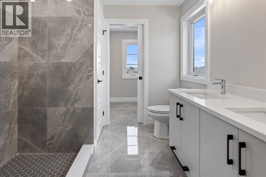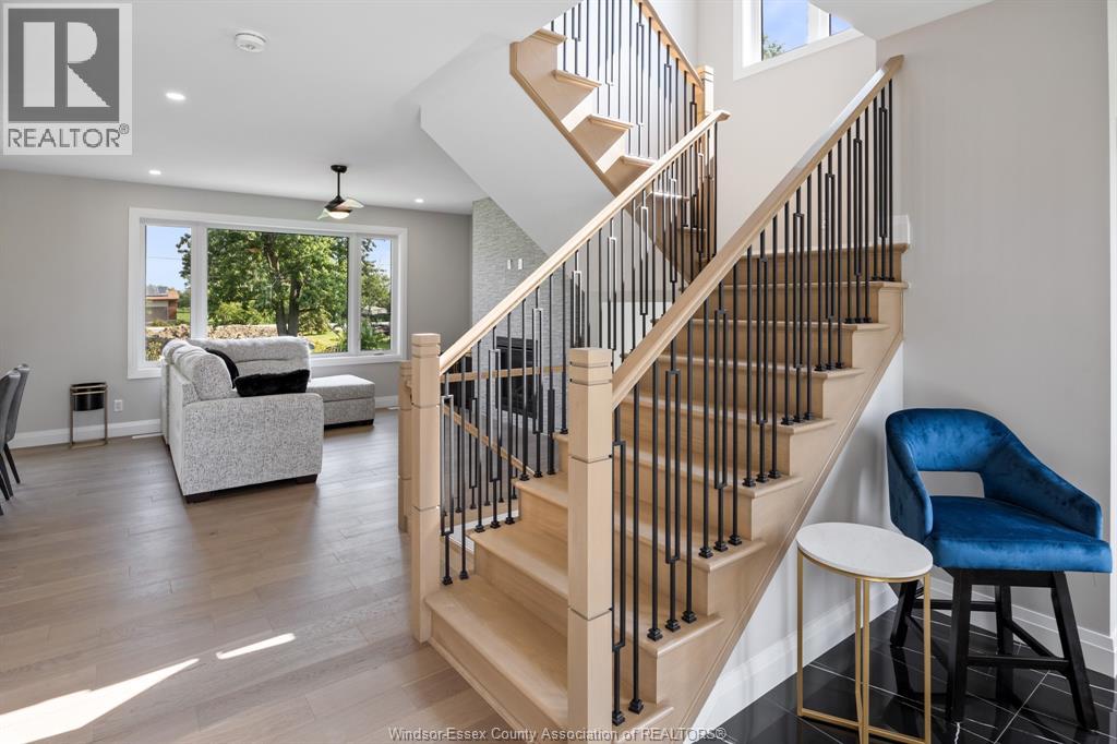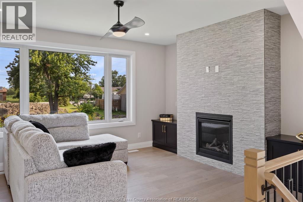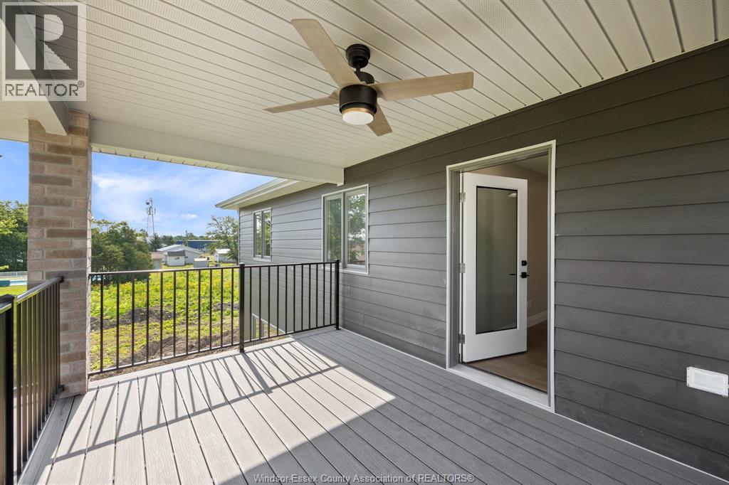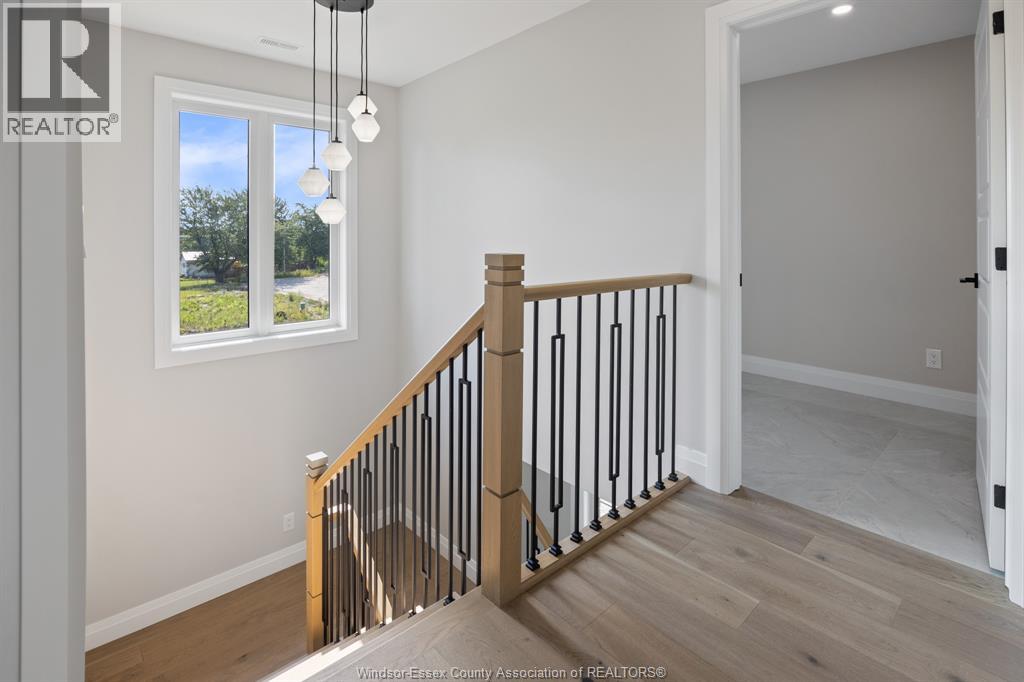 Builder’s model home by Bart DiGiovanni Construction in Essex Town Centre, ready to move in! This stunning 2-story home features 4 bedrooms, 2.5 baths, and a striking stone, brick, and hardboard façade. The main floor boasts 9’ ceilings, a spacious great room with a gas fireplace, and an open-concept kitchen with ceiling-height cabinets, quartz countertops, an island, a walk-in butler’s pantry and access to a covered patio. A mudroom is conveniently located at the daily entry. Upstairs, the hardwood staircase leads to 4 large bedrooms, including a primary suite with a walk-in closet, a covered balcony, and a luxurious ensuite with double sinks and a custom glass shower. The second floor also features a laundry room. Additional highlights include an insulated double garage with a side exit, a concrete driveway, and full basement. *BONUS Kitchen Backsplash and Composite Deck included plus 7-year Tarion warranty. (id:4555)