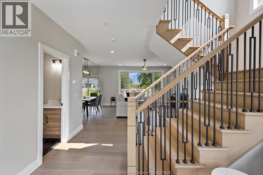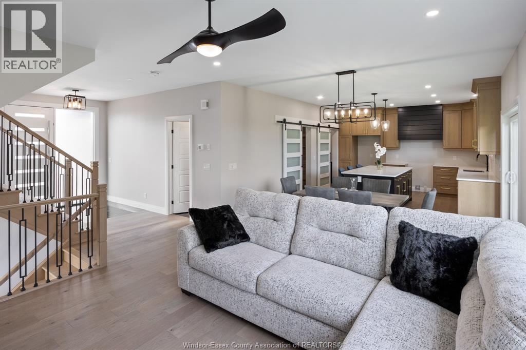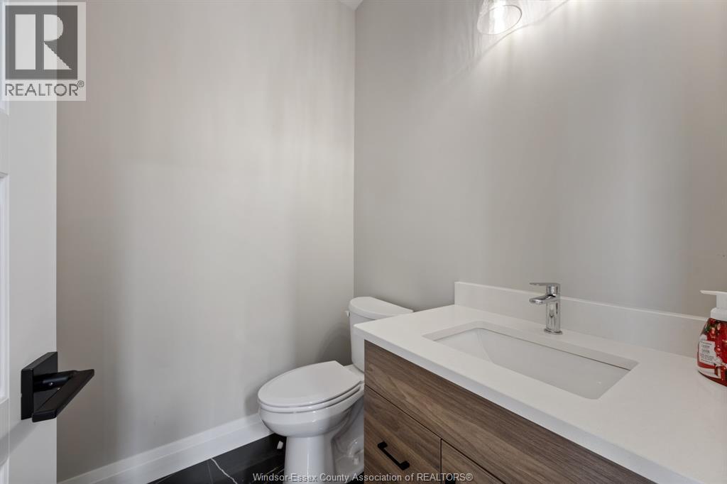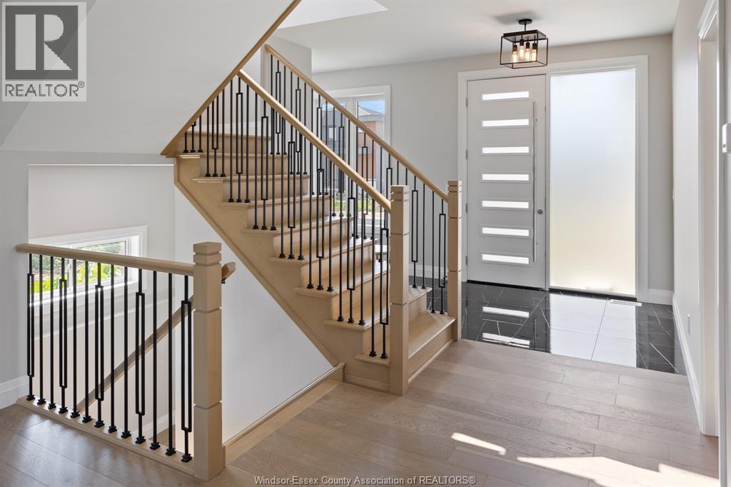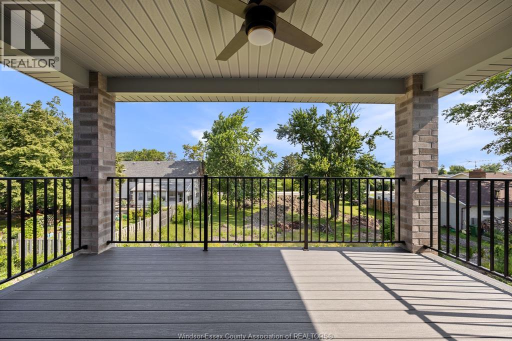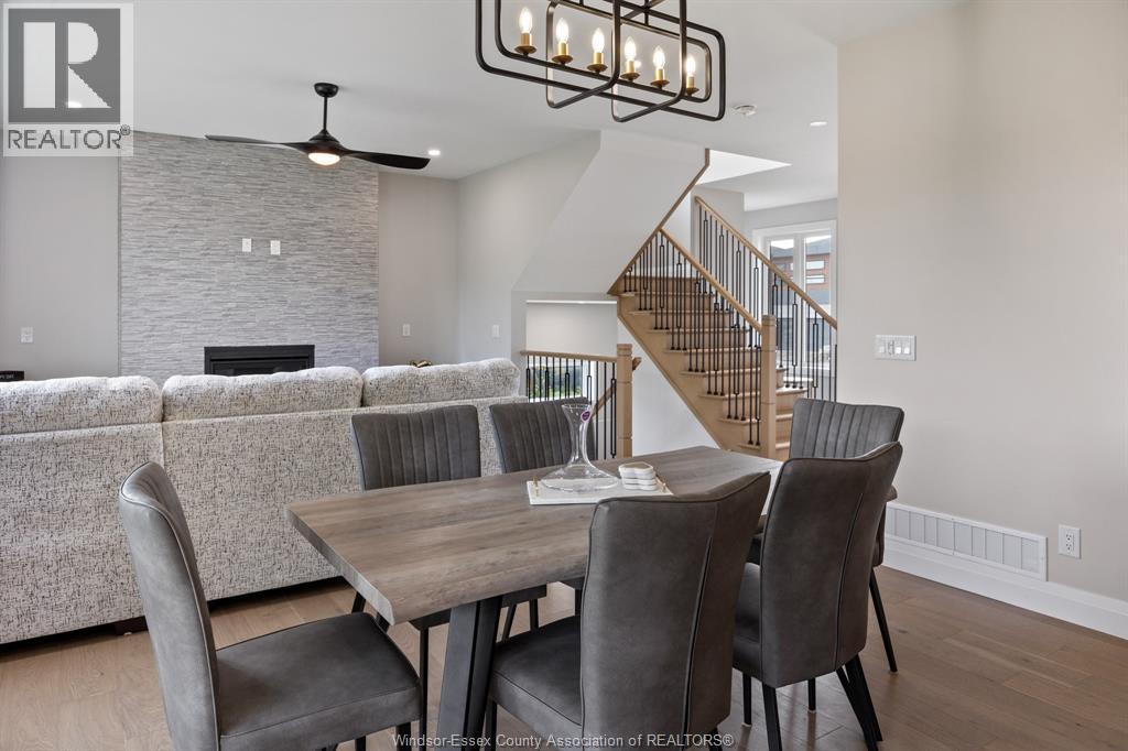 Builder’s model home by Bart DiGiovanni Construction in Essex Town Centre, ready to move in! This stunning 2-story home features 4 bedrooms, 2.5 baths, and a striking stone, brick, and hardboard façade. The main floor boasts 9’ ceilings, a spacious great room with a gas fireplace, and an open-concept kitchen with ceiling-height cabinets, quartz countertops, an island, a walk-in butler’s pantry and access to a covered patio. A mudroom is conveniently located at the daily entry. Upstairs, the hardwood staircase leads to 4 large bedrooms, including a primary suite with a walk-in closet, a covered balcony, and a luxurious ensuite with double sinks and a custom glass shower. The second floor also features a laundry room. Additional highlights include an insulated double garage with a side exit, a concrete driveway, and full basement. *BONUS Kitchen Backsplash and Composite Deck included plus 7-year Tarion warranty. (id:4555)