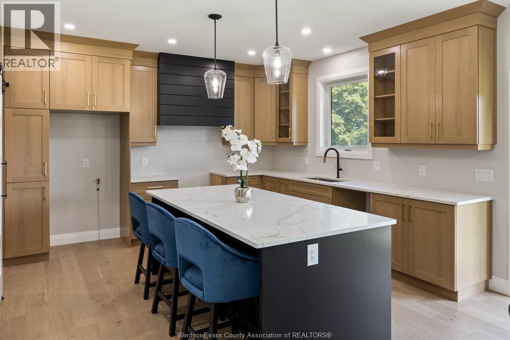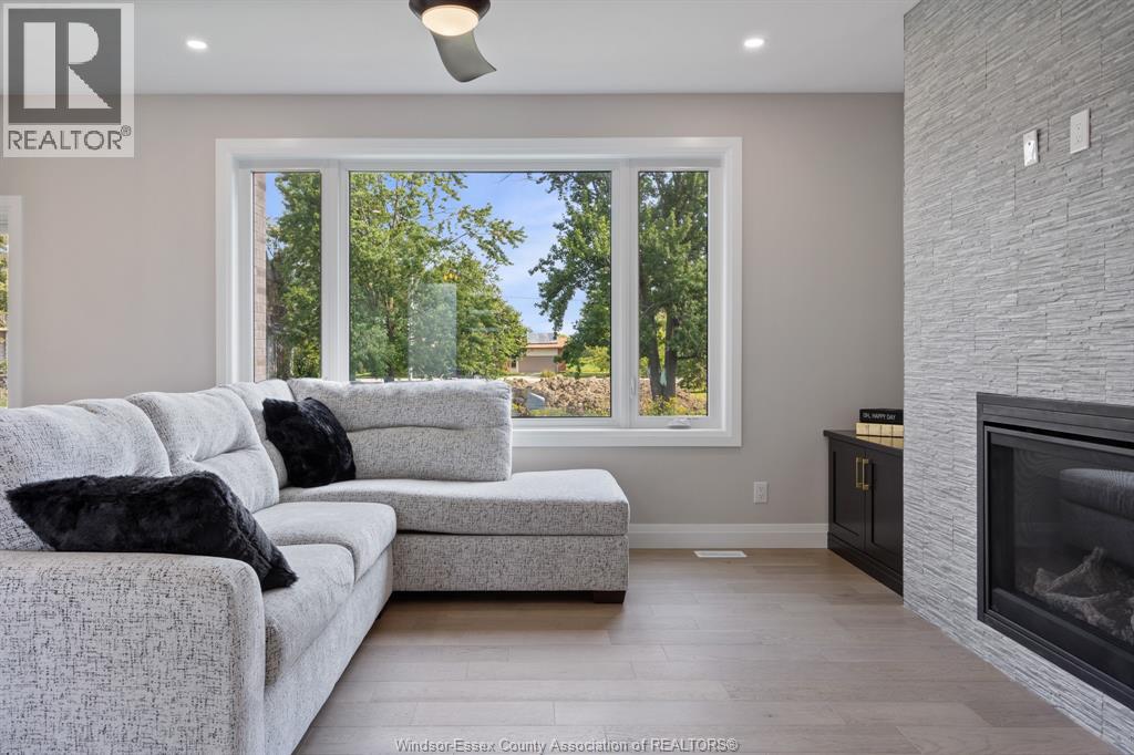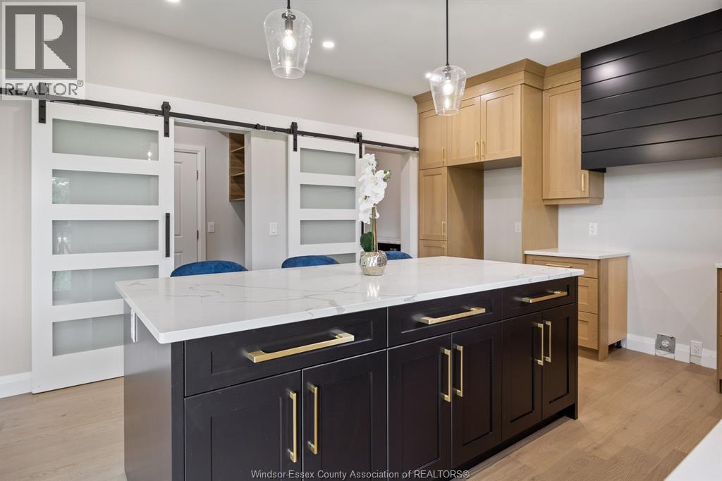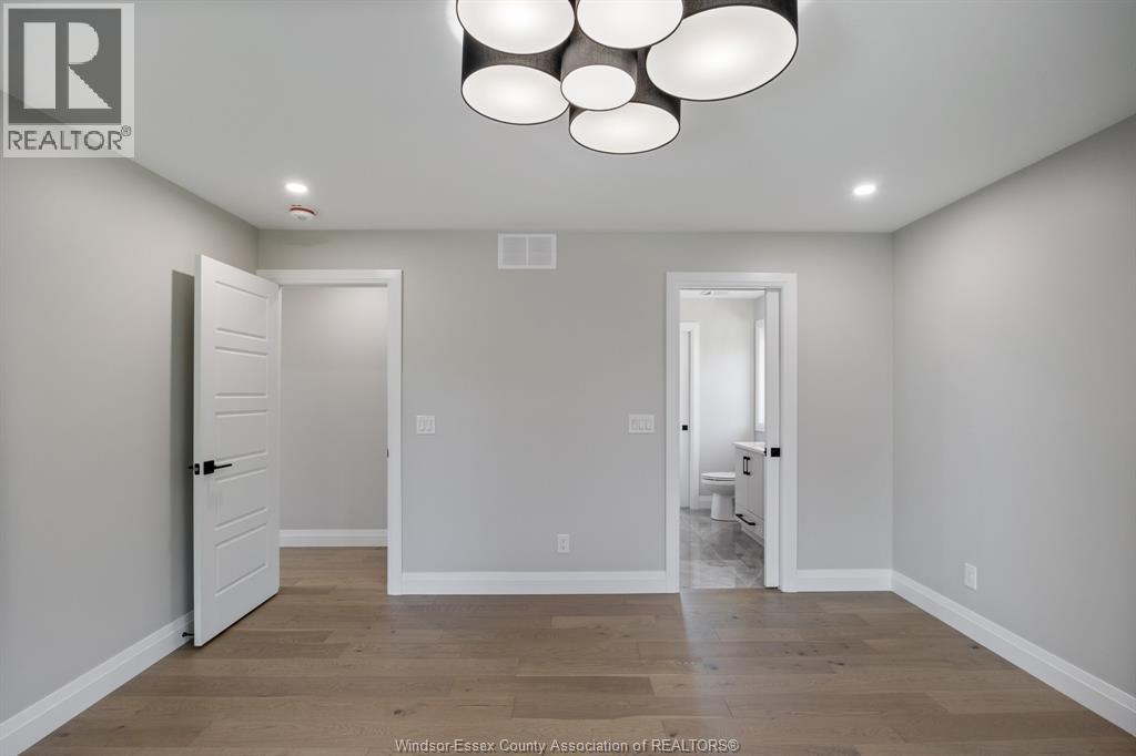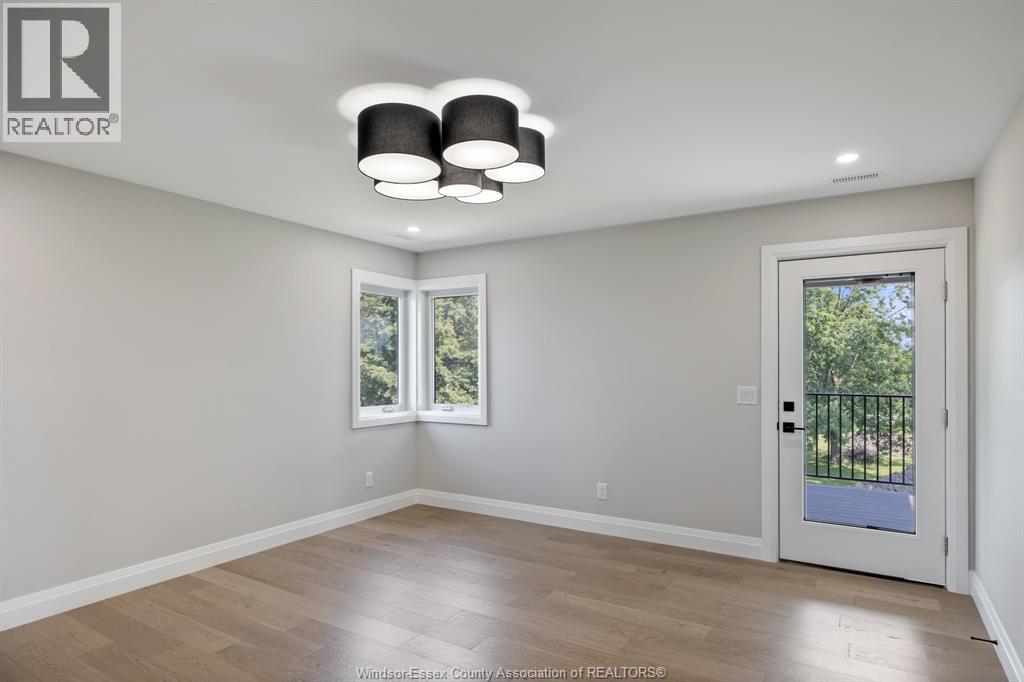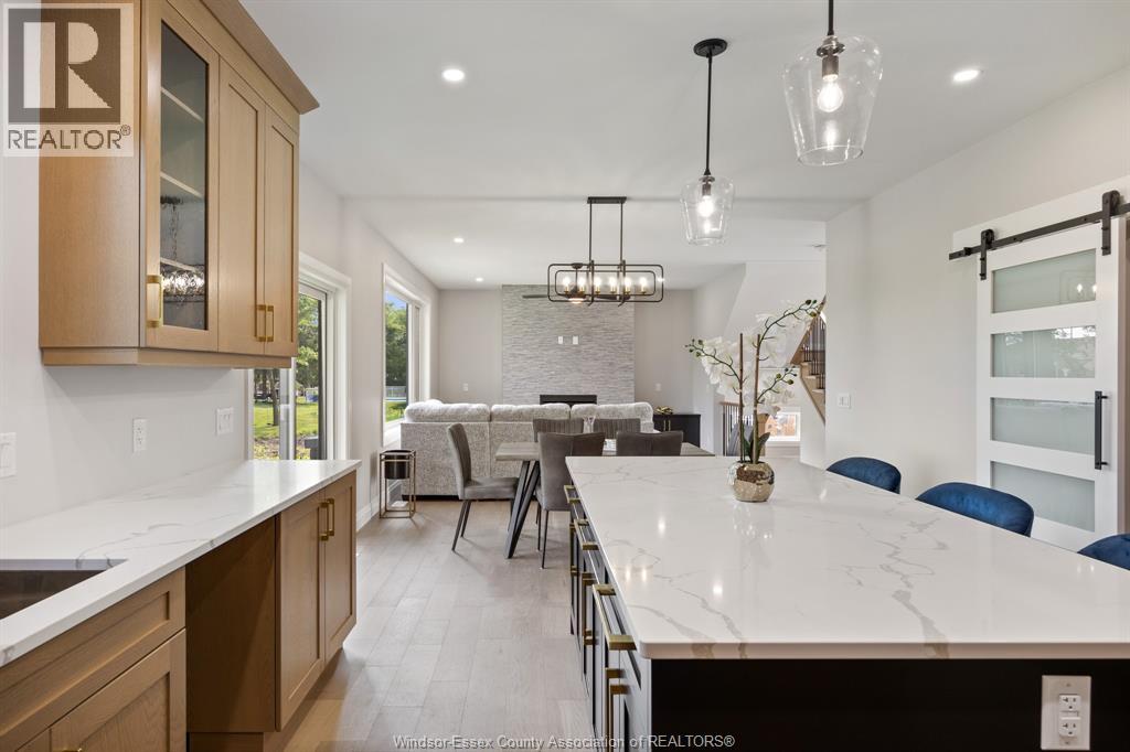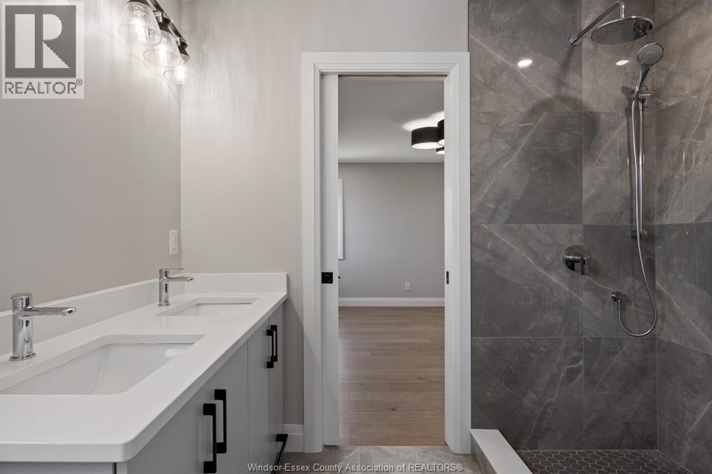 Builder’s model home by Bart DiGiovanni Construction in Essex Town Centre, ready to move in! This stunning 2-story home features 4 bedrooms, 2.5 baths, and a striking stone, brick, and hardboard façade. The main floor boasts 9’ ceilings, a spacious great room with a gas fireplace, and an open-concept kitchen with ceiling-height cabinets, quartz countertops, an island, a walk-in butler’s pantry and access to a covered patio. A mudroom is conveniently located at the daily entry. Upstairs, the hardwood staircase leads to 4 large bedrooms, including a primary suite with a walk-in closet, a covered balcony, and a luxurious ensuite with double sinks and a custom glass shower. The second floor also features a laundry room. Additional highlights include an insulated double garage with a side exit, a concrete driveway, and full basement. *BONUS Kitchen Backsplash and Composite Deck included plus 7-year Tarion warranty. (id:4555)