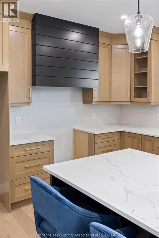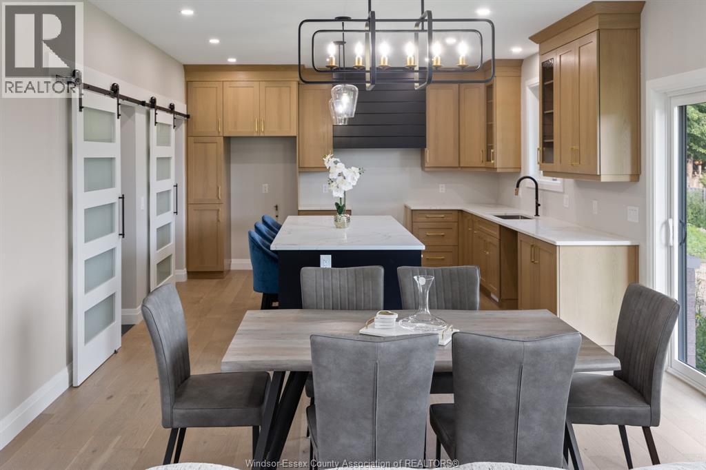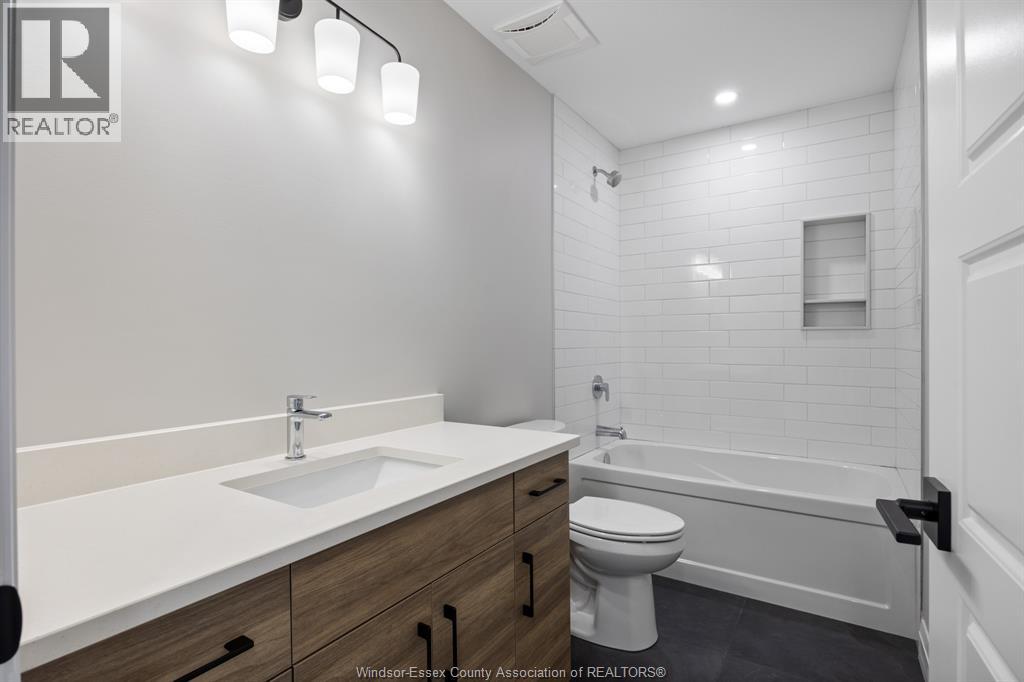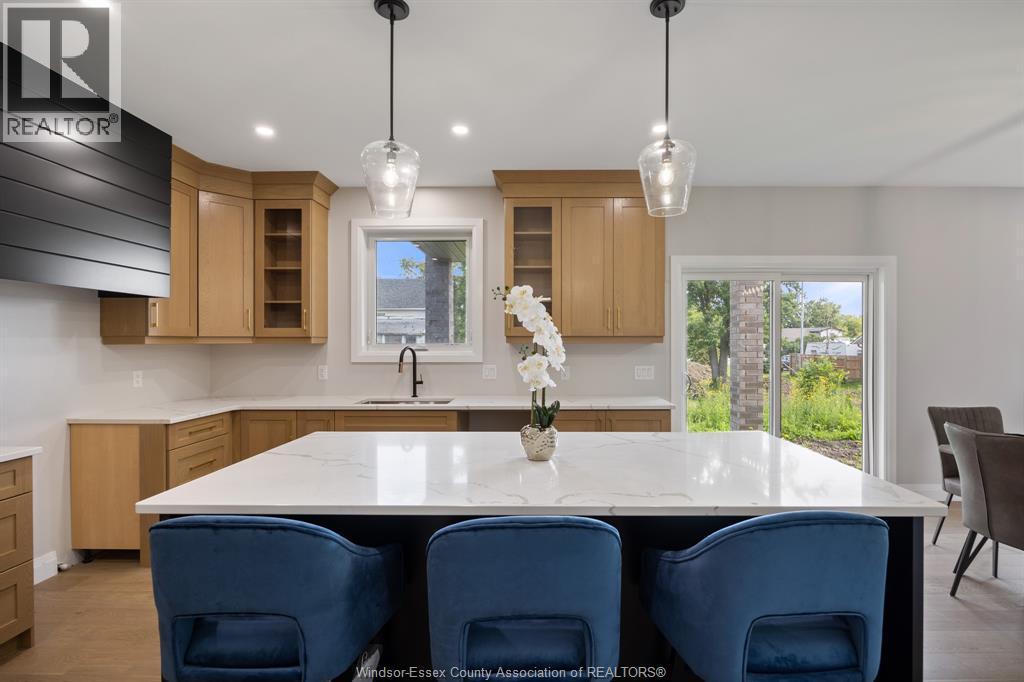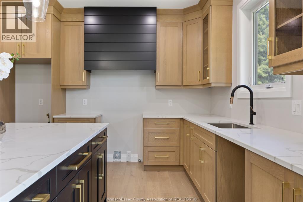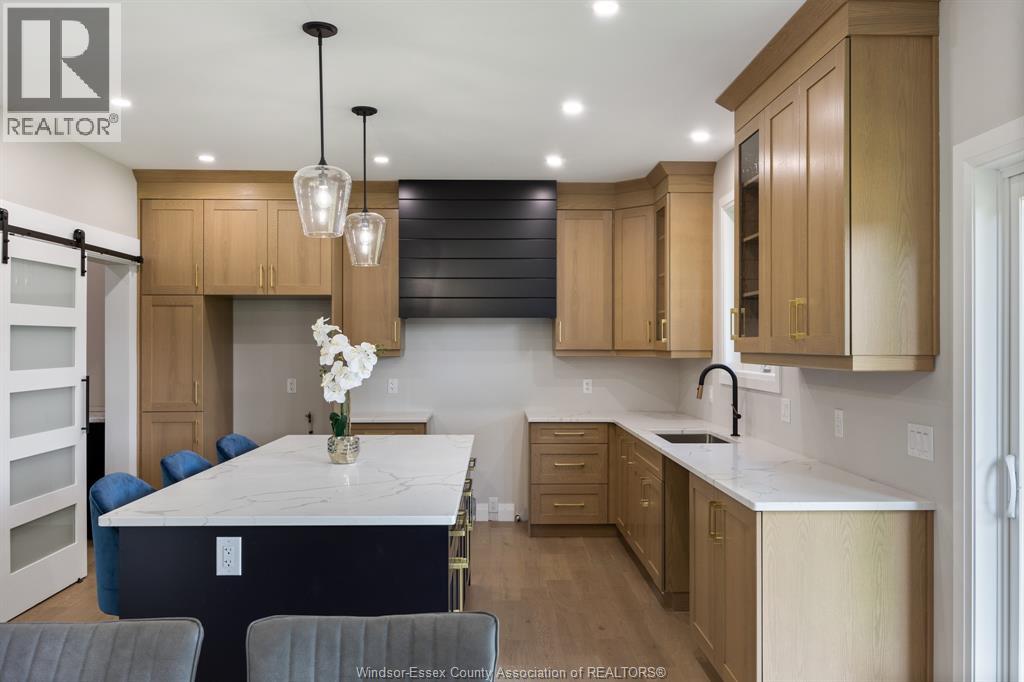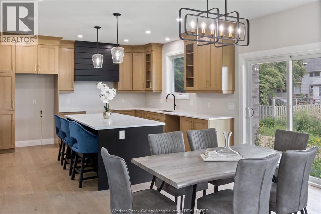 Builder’s model home by Bart DiGiovanni Construction in Essex Town Centre, ready to move in! This stunning 2-story home features 4 bedrooms, 2.5 baths, and a striking stone, brick, and hardboard façade. The main floor boasts 9’ ceilings, a spacious great room with a gas fireplace, and an open-concept kitchen with ceiling-height cabinets, quartz countertops, an island, a walk-in butler’s pantry and access to a covered patio. A mudroom is conveniently located at the daily entry. Upstairs, the hardwood staircase leads to 4 large bedrooms, including a primary suite with a walk-in closet, a covered balcony, and a luxurious ensuite with double sinks and a custom glass shower. The second floor also features a laundry room. Additional highlights include an insulated double garage with a side exit, a concrete driveway, and full basement. *BONUS Kitchen Backsplash and Composite Deck included plus 7-year Tarion warranty. (id:4555)
