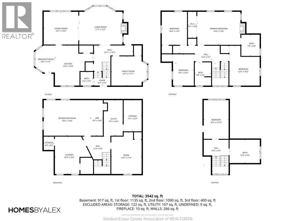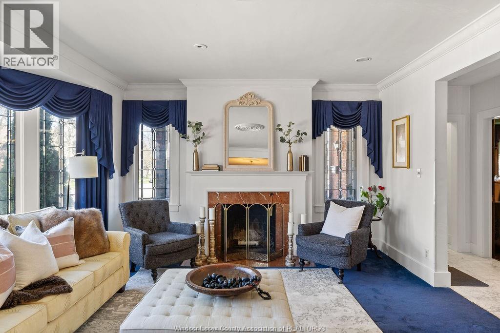 Timeless 2 and a half storey historic home in the heart of Windsor! Featuring 5 bedrooms and 3.5 baths, this well-maintained property offers a spacious living room with natural fireplace, formal dining room, eat-in kitchen, powder room, and main floor office with wet bar. The second level includes a large primary suite with fireplace & 5pc. ensuite, plus 3 bedrooms and a 4pc. bath. Third floor adds a bonus bedroom and 3pc. bath. Finished lower level with sizeable laundry room, games room with bar, and ample storage. Fully fenced yard, detached 2-car garage and side drive(2018). Alarm & sprinkler system. Original hardwood under carpet. Listed on Windsor's Municipal Heritage Register. Close to U.S. border, shopping, parks & trails. (id:4555)